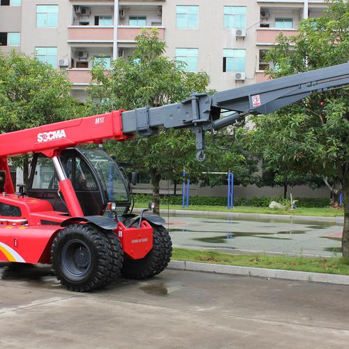 1、涡轮增压柴油机,动力换档定轴式液力变速器,牵引力大。2、驱动桥减速增扭,横置液压缸式转向机构,全液压负荷传感转向,重型轮胎,牵引性能好。3、液压系统加装回油散热器和背压保护装置,确保整机热平衡。4、整体式车架,三节箱型伸缩式工作臂,配有货叉或吊臂装置,叉吊两用满足作业多用途要求。5、液压平衡阀对落臂与伸缩起限速作用,防止重物下降失控。6、基本臂、伸缩臂内置伸缩油缸、外置变幅油缸,确保伸缩装置的稳定性。7、可调式方向机,航空座椅,先导阀控制工作装置油路,操纵轻便灵活。8、宽视野驾驶室,免维护蓄电池,冷暖空调、倒车显示屏。