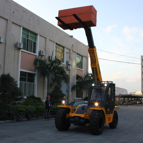 1、涡轮增压柴油机,动力换档定轴式液力变速器,牵引力大。2、四轮驱动,驱动桥减速增扭,全液压负荷传感转向,重型轮胎,牵引性能好。3、液压系统加装回油散热器和背压保护装置,确保整机热平衡。4、整体式车架,二节箱型伸缩式工作臂,配有货叉或吊臂装置,满足作业多用途要求。5、液压平衡阀对落臂与伸缩起限速作用,防止重物下降失控。6、基本臂、伸缩臂内置伸缩油缸,外置变幅油缸,确保伸缩装置的稳定性。7、可调式方向机,航空座椅,先导阀控制工作装置油路,操纵轻便灵活。8、宽视野驾驶室,免维护蓄电池,冷暖空调、倒车显示屏。