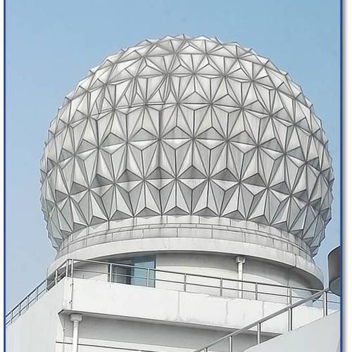 圆顶是一种仪器防护设备,提供一个可沿方位方向任意旋转的半球(或超半球)式屋顶,顶部开有天窗,用于防护光学仪器、遥感遥测仪器、射电无线电仪器等。
