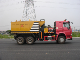 AD5250TYHBW型路面养护车是一种沥青路面维护与养护的多用途、高效率的路面机械。在沥青路面大修过程中,能对沥青混合料进行长距离、大容量的保温运输工作,与沥青混合料拌合楼、摊铺机配套使用,可以实现高速公路沥青路面大修施工、养护所需的各种沥青混合料的保温运输和冷料回收、升温加热功能。 料仓加热方式为热风循环式,温度具有自动监控,自动保温性能,既实现均温,又节省能源。此车前可挂装压路机;配有乳化沥青系统,具有气动喷洒功能,方便快捷、资源共享。数字化显示,所有功能均由电器开关操纵,轻便、快捷、灵敏、可靠。