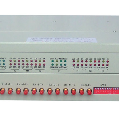 E1通道保护倒换设备为“1+1”保护型设备,它将来至用户设备的E1信号通过主、备E1传输接口分发到两个传输路由,同时插入传输质量监测信息,接收时通过分析两条传输路由的信号质量,自动选择来至“较好”的路由的信号送往用户设备。 本系统能对两条传输路由信号的传输时延差进行校准,最大允许主备路由的时延差为32ms,当切换级别选择为0时,切换时间为比特级(纳秒级),因此能有效的消除用户信号因传输路由故障而造成的损伤,保证用户设备正常可靠的工作。