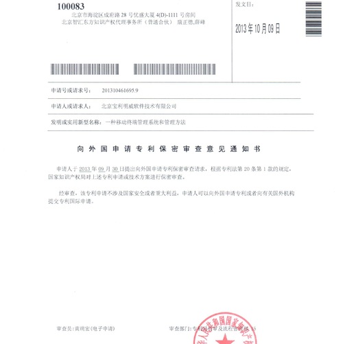 宝利明威移动设备管理系统完全自主知识产权的移动互联网及云计算专利技术,支持国密商密的加密算法。