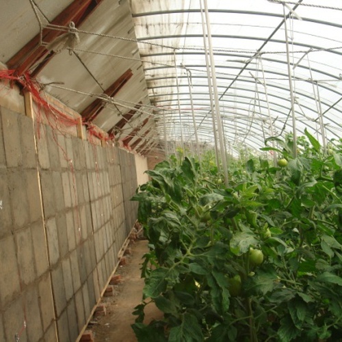 本相变材料包括由亲水性表面改性处理的改性定形相变材料和包括聚合物胶凝材料和纤维增强材料改性水泥基材料组成。本相变材料具有相变潜热大、蓄放热能力强、物化性能稳定、使用方便、材料来源广泛、寿命长、环保、成本低廉等特点。可单独压制成定形相变材料板并组成相变材料蓄热罐,高效储存热量;也可与水泥砂浆混合预制成砌块粘贴于围护结构表面,提高围护结构的蓄放热能力;还可预制成定形相变材料砌块,构筑太阳能通风供暖墙体,为建筑实现太阳能连续供暖。