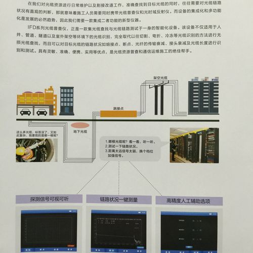 IFD系列光缆普查仪,正是一款集光缆查找与光缆链路测试于一身的智能化设备。该设备不仅适用于人井、管道、隧道以及室外架空等环境下的光缆识别,完全取代以往切割、弯折、冷冻等光缆识别的方法进行无损光缆查找,而且可以对目标光缆的链路状况如熔接点、断点、光纤的传输衰减、接头衰减及光缆长度进行识别和测试。具有灵敏、准确、便携、实用等优点,是光缆资源普查和通信运维施工的绝佳帮手