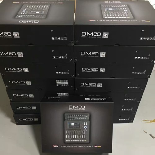 全球首款20路数字紧凑型调音台系列产品,填补市场空白,和同行业调音台相比,数字调音台触摸屏更大,触摸感更好,体积更加轻便小巧,操控更直观,功能更齐全。核心采用第四代40bit SHARC浮点处理器,24bit/48kHz模数/数模转换,内置带混响、延时、压限、EQ和GEQ效果。配备一个7寸由安卓驱动的高清触摸屏,可以进行WIFI无线控制,配合9个100mm日本ALPS电动推子调整参数,操控直观。DM20调音台=压限器+效果器+分配器+均衡器+无损播放器+无损录音机+模拟调音台。