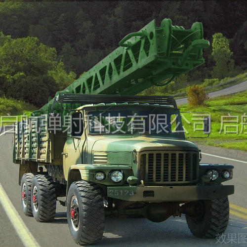 弹射器采用气动弹射方式,安全可靠、操作简便,易于维护,适应性强,不需要复杂的勤务、保障,具有极强的实用性,是500公斤级以内无人机弹射起飞的最佳设备。我公司采用独创的气动机构和高效能的直联导气系统,以内置微电脑进行作业程序控制,使弹射间隔可缩短至5分钟之内,整套设备高度集成,除气源之外,免接任何附加电源、线路和设施,适合各种气候及环境。 弹射器分为拖带、舰载、车载三种类型,QHL-A1811M型为车载型弹射器,整套系统一体化安装固定在载车底盘上,全套设备度高集成,机动灵活,更适合于重量级无人机的弹射作业。车载型弹射器需特别定制,由于选用载车不同,具体技术参数以订单为准。