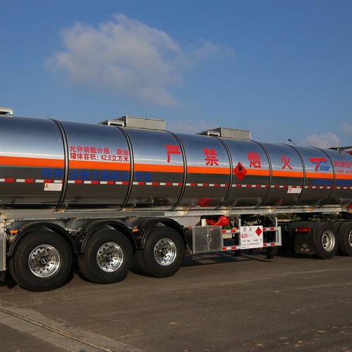 铝合金罐车是指罐体材料用的是铝合金材板制作而成的罐式车。按照装运介质的不同可分为铝合金液罐车和铝合金粉罐车。铝合金液罐车又可细分为铝合金油罐车、铝合金化工罐车和铝合金食品罐车。铝合金材料具有密度小、导电性好、耐蚀性强、散热性好和易于加工等特点,因而被广泛应用于交通工具中。它的另一个重要的特性是具有较高的相对力学性能,能够满足汽车容器材料的使用要求,符合发展趋势要求,是轻量化技术发展重要途径之一。