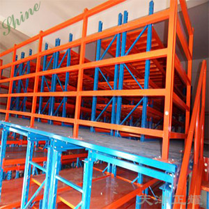 阁楼式货架:全组合式结构,专用轻钢楼板,造价低,施工快。适用于场地有限品种繁多,数量少的情况下,它能在现有的场地上增加几倍的利用率,可配合使用升降机操作。使用货架做楼面支撑,通常可设计成2-3层,设置有楼梯和货物提升电梯等,还可预留理货平台,使搬运台车与货物提升电梯合理的衔接起来充分的利用空间。此类货架适用于库房较高,货物较小,人工存取,储货量大的情况。例如五金工具,电子器材,机械零配件等物品的小包装散件储存。