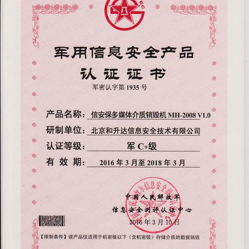 信安保 MH-2008(E)多媒体介质销毁机是一款采用强磁场和粉碎两种方式对硬盘、软盘、磁带、磁卡、光盘、U 盘(需拆去外壳后销毁)、固态硬盘(需拆去外壳后销毁)等存储介质进行销毁的设备。该产品拥有多项技术保证销毁效果,设备内置场强检测仪和电压检测仪;独有的精密粉碎结构保证粉碎效果;特别设计的投料口保证介质顺利进入;同时配备 XBC 磁性介质销毁机管理系统对设备消磁进行管理。是一款功能全面的存储介质销毁设备。