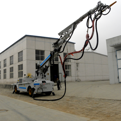 HSP32混凝土喷射机是我厂与石家庄铁道大学共同研发生产的大型隧道工程设备,主要由底盘部件、工作臂、柴油发动机系统、电气系通、液压系统、泵送系统、供风系统、喷射头系统、添加剂输送系统、水清洗系统组成,整车采用模块化设计和大量创新技术,全液压驱动,关键部件选用德、美、日进口液压及电气元件,具有喷射效率高、喷射范围广、使用可靠便捷、自动化程度高、原料配比均匀可调等特点,环境污染小,工作劳动强度大大降低,有效地满足隧道作业、地下作业和“露天”工地的混凝土喷护施工需求,主要适用于矿山巷道、铁路、公路工程、高层建筑基坑、军事工程等工程建设。