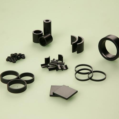 粘结钕铁硼磁体是将钕铁硼磁粉和粘结剂均匀混合成粉末,然后在一定的压力下将粉末压制成所需形状和尺寸的生坯,并经固化、研磨光饰和表面涂装而制成的。粘结钕铁硼磁体具有磁性能较高、成本低、尺寸精度和一致性好、形状自由度大等优点,但其使用温度不高,低于180℃。