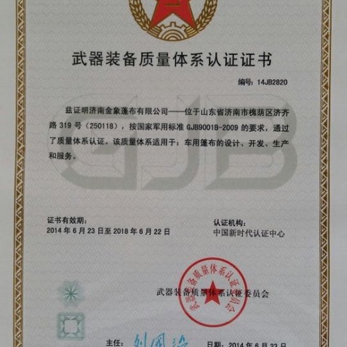 一、涂覆技术:按不同用途及采购方要求研制涂层配方,并将其均匀的涂至维尼纶帆布上,经双辊挤压后进入烘箱进行200度高温塑化,冷却定型后制成防水布(半成品); 二、篷布制作做到了车厢顶部无接缝,两侧接缝采用双面渗透铆焊工艺。