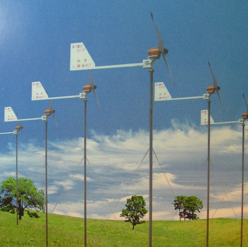 该风力发电机能在3m/s(2级风)的风速下启动,当风速超过3m/s时(2级风),风力发电机激励电压,开始充电,当风速达到10m/s时,输出功率达到1000W。多台发电机同时使用时个建立发电机组,发电机组建立简单、方便。 自动边桨距机构: 该风力发电机采用螺旋变桨距机构来调节叶片的桨距,从而控制风轮转速,当风速变化时,在离心力和空气动力的作用下,通过风轮将毂中的螺旋槽来调节叶片的迎风角,从而达到限速的目的。