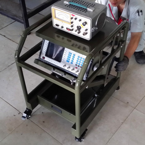 我司拥有专利的军辅产品仪表车是针对我军发展需要设计的,仪表车是车载及维修所使用的,也可放置电子配件和工具。33度仰角是维修人员观察、调谐仪表的最佳观察角度。另外底部配有轮子,移动方便。
