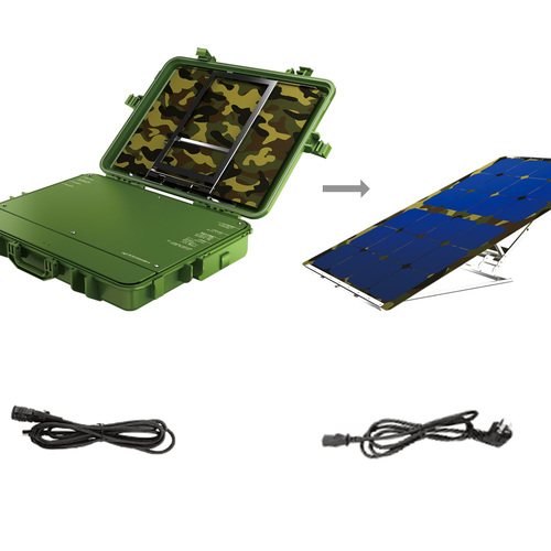 本产品主要由可弯曲单晶硅太阳能电池板、电源主体箱、连接线组成。主体箱集成了控制单元、开关电源、逆变单元、蓄电池组等功能模块,额定输出功率300W,能提供220V交流(纯正弦波)及7.4V/14.8V、5V直流三种输出