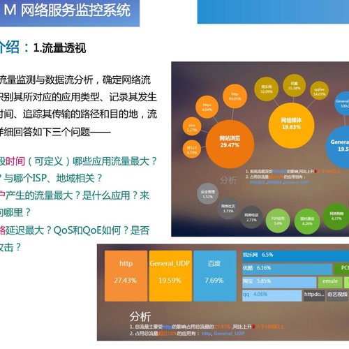 通过使用本产品,能精确感知网络业务类型,实现网络服务质量的监测分析,支持网络设备、服务器等设备运行状态监控;网流量、网络及业务性能指标的监测;分析网络瓶颈、预测网络故障、优化网络资源、提升网络性能、产生运营报告,减少网络投资和运营成本。