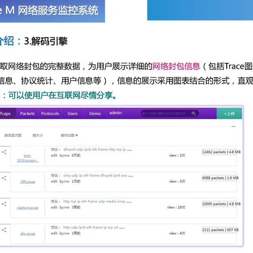 本产品以“流量透视、性能监控、解码引擎、监测告警、配置管理、专家工具”作为核心功能模块,以报表分析和系统管理作为辅助功能,全方位协助客户合理分配网络资源,净化网络通道,保障关键业务性能,监测实时流量与用户行为,使网络安全、可靠、高效、稳定地运行。