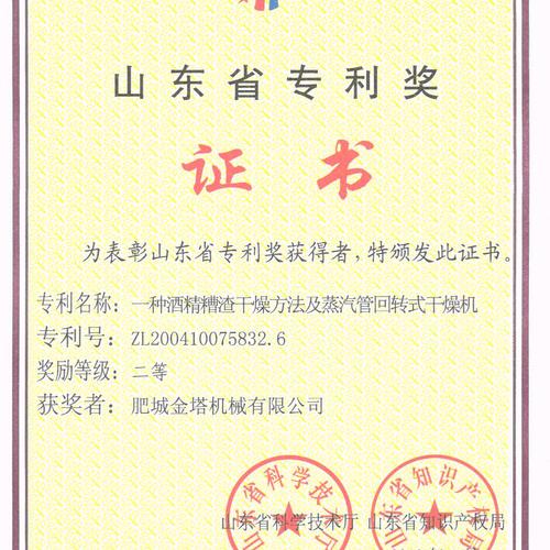 蒸汽管回转式干燥机设备受热膨胀量能自行补偿等优点,固体废弃物回收率90%以上,在结构上、原理上、工艺上均有所突破,属国内首创,在技术上居国际先进水平,被列入《当前国家鼓励发展的环保产业设备(产品)目录》(2010年)。广泛用于军工产品生产过程中产生的废糟渣干燥回收,节能减排。