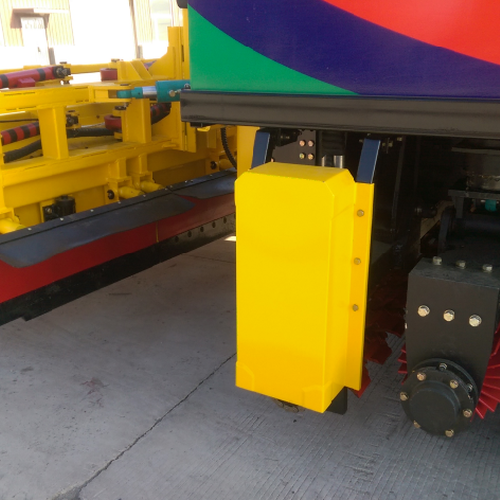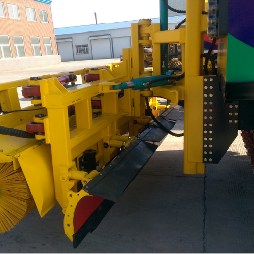 控制方面,采用PLC程序控制和触摸屏监控操作,操纵更方便;前置除雪铲及钢丝尼龙滚刷,中部是由滚压冲击轮及轧刮辊轮组成的破冰系统,后置分段式四连杆斜铲及排刷,除冰雪效果好且速度快。无论什么形式的冰雪均能够采用不同机构进行作业,达到一次性见黑路面的效果,不损伤标志线和路面。