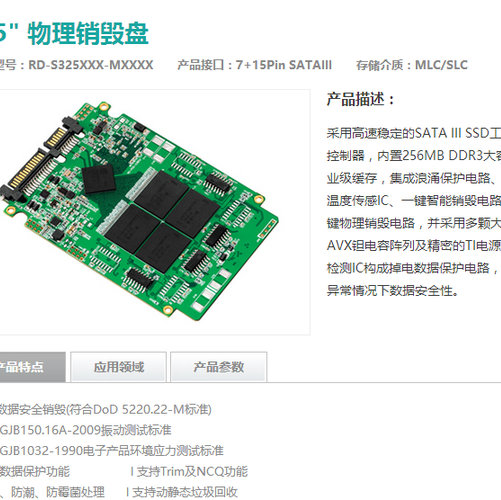 - 硬件销毁电路设计,保证SSD 每颗存储芯片被完全销毁且不影响到应用平台电性能。