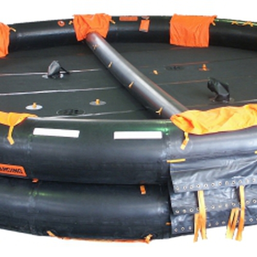 - 该系列救生筏是在抛投式气胀救生筏的基础上增加了自动扶正和吊车起吊救生筏降落水面...
