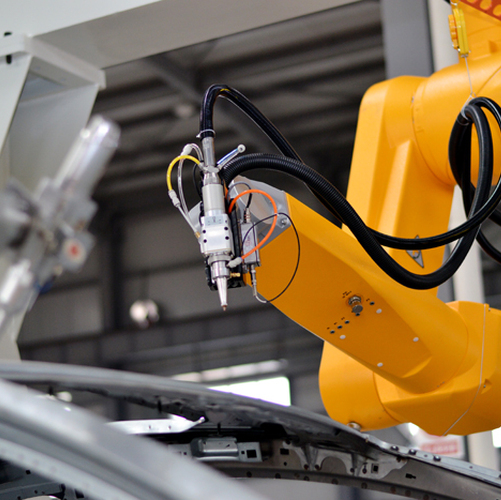 - 通过龙门固定倒挂机器人或立式固定机器人底座、光纤激光器柔性传输高品质的激光到切...