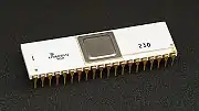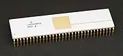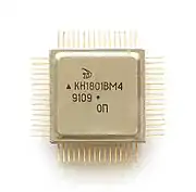 - 1806VM2: functionally equivalent to the nMOS K1801VM2; clock speed 5 MHz; 42-pin ceramic planar package; 134636 transistors[8][9][10][11]