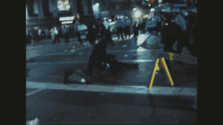 At 9 pm, police formed a skirmish line around the park bathrooms. This drew a crowd of spectators who heckled the police. The crowd rapidly grew until the police charged into the crowd swinging their batons, scattering the crowd. At 11 pm the police pushed the protesters out of the park. Most protesters left the park and congregated nearby, taunting the police.