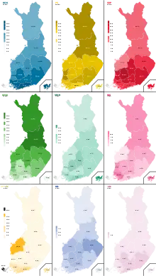 - ↑ "Kansanedustajien paikkojen jako vaalipiirien kesken". Digi- ja väestötietovirasto (in Finnish). Archived from the original on 9 November 2022. Retrieved 2 April 2023.