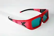The Omega 3D/Panavision 3D system also uses this technology, though with a wider spectrum and more "teeth" to the "comb" (5 for each eye in the Omega/Panavision system). The use of more spectral bands per eye eliminates the need to color process the image, required by the Dolby system. Evenly dividing the visible spectrum between the eyes gives the viewer a more relaxed "feel" as the light energy and color balance is nearly 50-50. Like the Dolby system, the Omega system can be used with white or silver screens. But it can be used with either film or digital projectors, unlike the Dolby filters that are only used on a digital system with a color correcting processor provided by Dolby. The Omega/Panavision system also claims that their glasses are cheaper to manufacture than those used by Dolby.[10] In June 2012, the Omega 3D/Panavision 3D system was discontinued by DPVO Theatrical, who marketed it on behalf of Panavision, citing "challenging global economic and 3D market conditions". Although DPVO dissolved its business operations, Omega Optical continues promoting and selling 3D systems to non-theatrical markets. Omega Optical’s 3D system contains projection filters and 3D glasses. In addition to the passive stereoscopic 3D system, Omega Optical has produced enhanced anaglyph 3D glasses. The Omega’s red/cyan anaglyph glasses use complex metal oxide thin film coatings and high quality annealed glass optics.