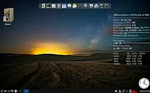 4MLinux is a lightweight Linux distribution made for both the 32 bit and 64 bit architectures.[1][2] It is named "4MLinux" since it has 4 main components of the OS. Maintenance (it can be used a rescue Live CD), Multimedia (There is inbuilt support for almost every multimedia format), Miniserver (It comes with a 64-bit server is included running LAMP suite), and Mystery (Includes a collection of classic Linux games).[3] The distribution is developed in Poland, and was first released in 2010.[4] The distribution does not include a package manager, and uses JWM (Joe's Window Manager) as its default window manager. It also comes with Conky preinstalled.[5] When installing programs with the distribution, the distribution will retrieve the Windows version rather than the Linux version due to it coming pre-installed with Wine (A compatibility layer for Windows applications), and not having any package manager.[6] The distribution is geared towards people who prefer a lightweight distribution.[7] There is a version of the distribution called the "4MLinux Game Edition" which provides 90s games natively such as Doom, and Hexen.[8]