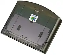 Though incompatible in every way with any other consumer electronics product, the 64DD's magnetic storage format is a proprietary floppy disk, resembling the large and sturdy shell of the proprietary Zip disk for personal computers.[26][70] Though various prominent sources have mistakenly referred to the medium as being magneto-optical technology, Nintendo's own developer documentation refers to it in detail as being magnetic.[8][67][68] Complementing its proprietary and copy-protected cartridge strategy, the proprietary 64 MB disk format was Nintendo's faster, more flexible, and copy-protected answer to the commodity Compact Disc format, which is cheaper to produce but is much slower, read-only, and easier to copy on personal computers. The most advanced CD technology delivered by the contemporaneous Sega Saturn and Sony PlayStation game consoles can hold at least 650 megabytes (MB) of information with a peak 300 kB/s[8] throughput and more than 200 ms seek speed. This compares to the Nintendo 64's cartridge's 4 to 64 MB size and 5 to 50 MB/s[66] of low latency and instantaneous load times, and the 64DD's 64 MB disk size and 1 MB/s peak[67] throughput with 75 ms average seek latency.[3] The high seek latency and low maximum throughput of a 2x CD-ROM drive contribute to stuttering and to very long loading times throughout a gameplay session in many games, in addition to a much higher production cost, testing cycle, and potential development time for all the potential extra content.[71]