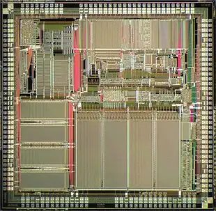 Two key events led Acorn down the path to ARM. One was the publication of a series of reports from the University of California, Berkeley, which suggested that a simple chip design could nevertheless have extremely high performance, much higher than the latest 32-bit designs on the market.[26] The second was a visit by Steve Furber and Sophie Wilson to the Western Design Center, a company run by Bill Mensch and his sister, which had become the logical successor to the MOS team and was offering new versions like the WDC 65C02. The Acorn team saw high school students producing chip layouts on Apple II machines, which suggested that anyone could do it.[27][28] In contrast, a visit to another design firm working on modern 32-bit CPU revealed a team with over a dozen members which were already on revision H of their design and yet it still contained bugs.[lower-alpha 2] This cemented their late 1983 decision to begin their own CPU design, the Acorn RISC Machine.[29]