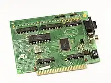 The ATI Wonder is a series of video cards for the IBM Personal Computer and compatibles, introduced by ATI Technologies in the mid to late 1980s.[1][2][3] These cards were unique at the time as they offered the end user a considerable amount of value by combining support for multiple graphics standards (and monitors) into a single card. The VGA Wonder series added additional value with the inclusion of a bus mouse port,[4] which normally required the installation of a dedicated Microsoft Mouse adapter.