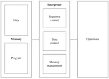A generic abstract machine is made up of a memory and an interpreter. The memory is used to store data and programs, while the interpreter is the component that executes the instructions included in programs.[9]