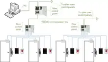 2. Serial main and sub-controllers. All door hardware is connected to sub-controllers (a.k.a. door controllers or door interfaces). Sub-controllers usually do not make access decisions, and instead forward all requests to the main controllers. Main controllers usually support from 16 to 32 sub-controllers.