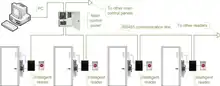 - Intelligent readers: have all inputs and outputs necessary to control door hardware; they also have memory and processing power necessary to make access decisions independently. Like semi-intelligent readers, they are connected to a control panel via an RS-485 bus. The control panel sends configuration updates, and retrieves events from the readers. Examples of such readers could be InfoProx IPO200 by CEM Systems, and AP-500 by Apollo. There is also a new generation of intelligent readers referred to as "IP readers". Systems with IP readers usually do not have traditional control panels, and readers communicate directly to a PC that acts as a host.