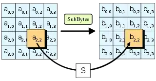 - SubBytes – a non-linear substitution step where each byte is replaced with another according to a lookup table.