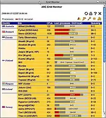 Advanced Resource Connector (ARC) is a grid computing middleware introduced by NorduGrid. It provides a common interface for submission of computational tasks to different distributed computing systems and thus can enable grid infrastructures of varying size and complexity. The set of services and utilities providing the interface is known as ARC Computing Element (ARC-CE).[2] ARC-CE functionality includes data staging and caching, developed in order to support data-intensive distributed computing.[3] ARC is an open source software distributed under the Apache License 2.0.[1]
