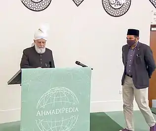 AhmadiPedia was launched on 2 July 2021 by Hazrat Mirza Masroor Ahmad, the fifth worldwide head of the Ahmadiyya Muslim Jamaat, after the Friday prayers.[3] Announcing the launch during his Friday sermon, he stated: