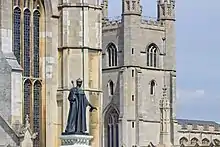 After graduating from Sherborne, Turing applied for several Cambridge colleges scholarships, including Trinity and King's, eventually earning an £80 per annum scholarship (equivalent to about £4,300 as of 2023) to study at the latter.[50][51] There, Turing studied the undergraduate course in Schedule B (that is, a three-year Parts I and II, of the Mathematical Tripos, with extra courses at the end of the third year, as Part III only emerged as a separate degree in 1934) from February 1931 to November 1934 at King's College, Cambridge, where he was awarded first-class honours in mathematics. His dissertation, On the Gaussian error function, written during his senior year and delivered in November 1934 (with a deadline date of 6 December) proved a version of the central limit theorem. It was finally accepted on 16 March 1935. By spring of that same year, Turing started his master's course (Part III)—which he completed in 1937—and, at the same time, he published his first paper, a one-page article called Equivalence of left and right almost periodicity (sent on 23 April), featured in the tenth volume of the Journal of the London Mathematical Society.[52] Later that year, Turing was elected a Fellow of King's College on the strength of his dissertation.[53] However, and, unknown to Turing, this version of the theorem he proved in his paper, had already been proven, in 1922, by Jarl Waldemar Lindeberg. Despite this, the committee found Turing's methods original and so regarded the work worthy of consideration for the fellowship. Abram Besicovitch's report for the committee went so far as to say that if Turing's work had been published before Lindeberg's, it would have been "an important event in the mathematical literature of that year".[54][55][56]