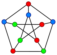 Finally, the third branch of algebraic graph theory concerns algebraic properties of invariants of graphs, and especially the chromatic polynomial, the Tutte polynomial and knot invariants. The chromatic polynomial of a graph, for example, counts the number of its proper vertex colorings. For the Petersen graph, this polynomial is .[1] In particular, this means that the Petersen graph cannot be properly colored with one or two colors, but can be colored in 120 different ways with 3 colors. Much work in this area of algebraic graph theory was motivated by attempts to prove the four color theorem. However, there are still many open problems, such as characterizing graphs which have the same chromatic polynomial, and determining which polynomials are chromatic.