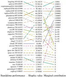 - A. Frechette; L. Kotthoff; T. Michalak; T. Rahwan; H. Hoos & K. Leyton-Brown (2016). "Using the Shapley Value to Analyze Algorithm Portfolios". Proceedings of the AAAI Conference on Artificial Intelligence. 30. doi:10.1609/aaai.v30i1.10440. S2CID 6676831.