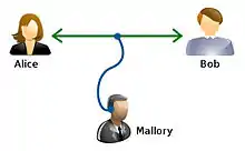 Example scenario where communication between Alice and Bob is intercepted by Mallory