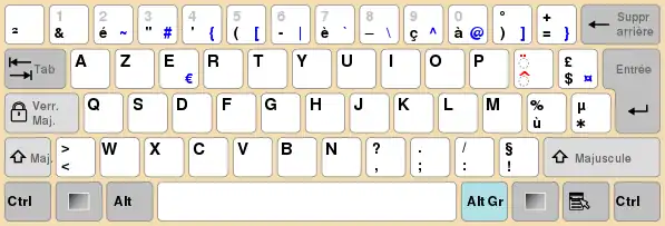 On AZERTY keyboards, AltGr enables the user to type the following characters: