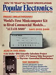 - Roberts, H. Edward; William Yates (January 1975). "Altair 8800 minicomputer". Popular Electronics. Vol. 7, no. 1. New York, NY: Ziff Davis. pp. 33–38. Archived from the original on 2008-08-21. Retrieved 2008-04-26.