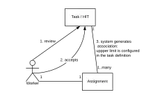 Amazon Mechanical Turk (MTurk) is a crowdsourcing website with which businesses can hire remotely located "crowdworkers" to perform discrete on-demand tasks that computers are currently unable to do as economically. It is operated under Amazon Web Services, and is owned by Amazon.[1] Employers, known as requesters, post jobs known as Human Intelligence Tasks (HITs), such as identifying specific content in an image or video, writing product descriptions, or answering survey questions. Workers, colloquially known as Turkers or crowdworkers, browse among existing jobs and complete them in exchange for a fee set by the requester. To place jobs, requesters use an open application programming interface (API), or the more limited MTurk Requester site.[2] As of April 2019, requesters could register from 49 approved countries.[3]