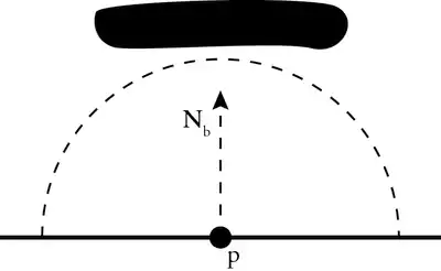 In this example, light may reach the point p only from the left or right sides, but the bent normal points to the average of those two sources, which is directly toward the obstruction.