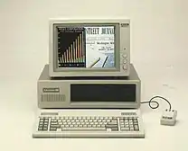 American Computer and Peripheral was founded in Santa Ana in April 1985 by Alan Lau.[3] Among the company's first offerings were a duo of IBM PC clones: the American XTSR and the American 286. These clones were introduced in May 1986 and were clones of IBM's PC XT and PC/AT, respectively. The clock speed of the XTSR's Intel 8088 microprocessor was selectable, allowing users to change it from 4.77 MHz to 7.37 MHz.[4] The module that allowed this selection of clock speeds was later sold separately as the American Turbo.[5][lower-alpha 1] The American 286 featured a motherboard in the Baby AT form factor with five expansion slots house in the same case as the American XTSR.[6] AC&P later introduced the American 286-A, an AT clone with a full-sized AT motherboard, featuring eight expansion slots.[7] AC&P hired Chi Yeung, previously a designer for Eagle Computer before the company went out of business in 1986, to design the 286-A.[8] Both it and the regular 286 ran the Intel 80286, with clock speeds selectable from 6 MHz to 8 MHz.[9] In June 1986, the company released the Abovefunction multifunction board that allows the PC, PC XT and compatibles to address up to 2 MB of RAM, as well as adding ports for joysticks and serial and peripheral devices.[10] A year later, the company introduced the American 386-16, an i386-based desktop computer that touted superiority over other 386 clones due to its use of zero-wait states when accessing video and making system calls to the BIOS for peripheral access.[11]