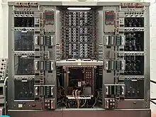 Educational analog computers illustrated the principles of analog calculation. The Heathkit EC-1, a $199 educational analog computer, was made by the Heath Company, US c. 1960.[28] It was programmed using patch cords that connected nine operational amplifiers and other components.[29] General Electric also marketed an "educational" analog computer kit of a simple design in the early 1960s consisting of two transistor tone generators and three potentiometers wired such that the frequency of the oscillator was nulled when the potentiometer dials were positioned by hand to satisfy an equation. The relative resistance of the potentiometer was then equivalent to the formula of the equation being solved. Multiplication or division could be performed, depending on which dials were inputs and which was the output. Accuracy and resolution was limited and a simple slide rule was more accurate. However, the unit did demonstrate the basic principle.